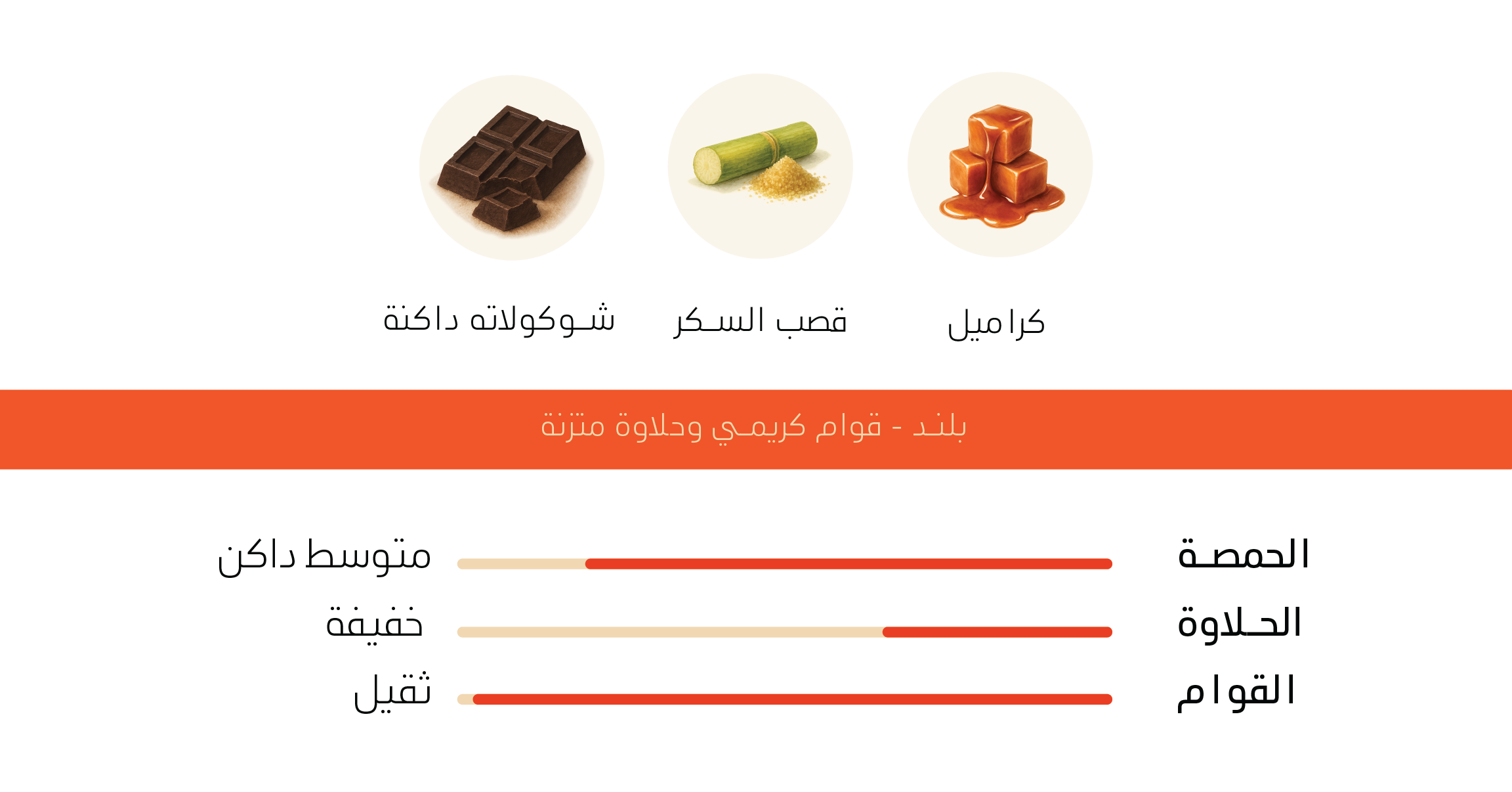 "من المحمّص" نكهة شوكولاتة وحلاوة ثابتة، مناسب لمن يريد قهوة يومية متوازنة وسهلة التقديم بجميع الطرق.
